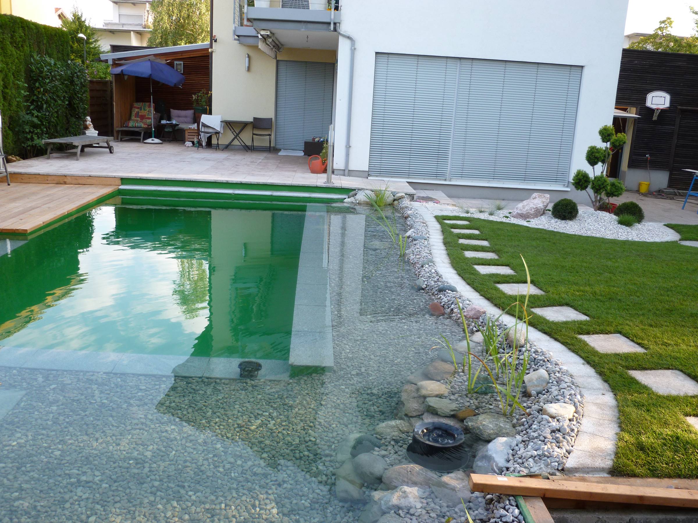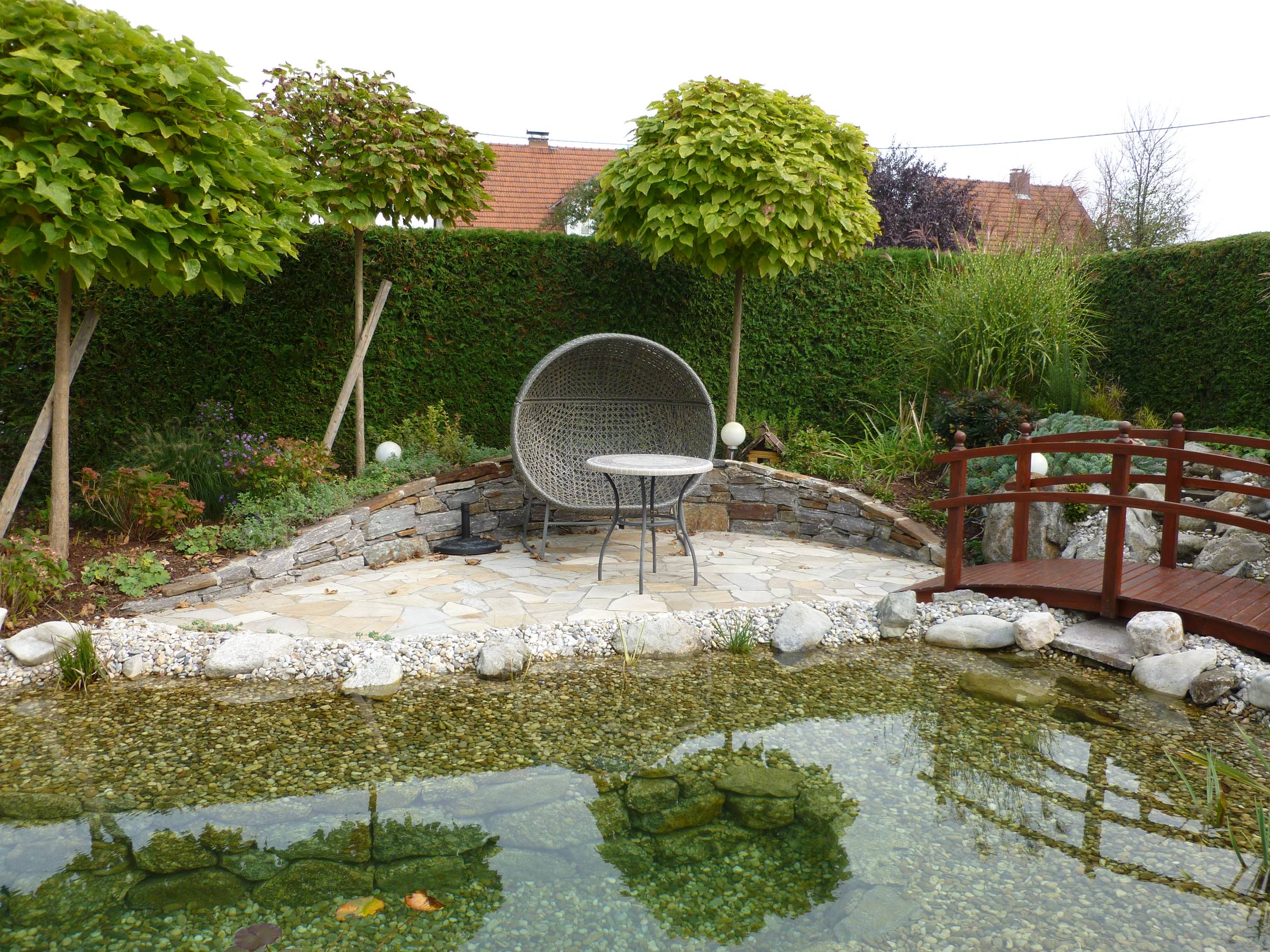 ist auch Leben. Ob es sich dabei um eine kleine Vogeltränke handelt, ein Biotop mit vielen Pflanzen, einen Springbrunnen, den Naturpool oder einen großen
